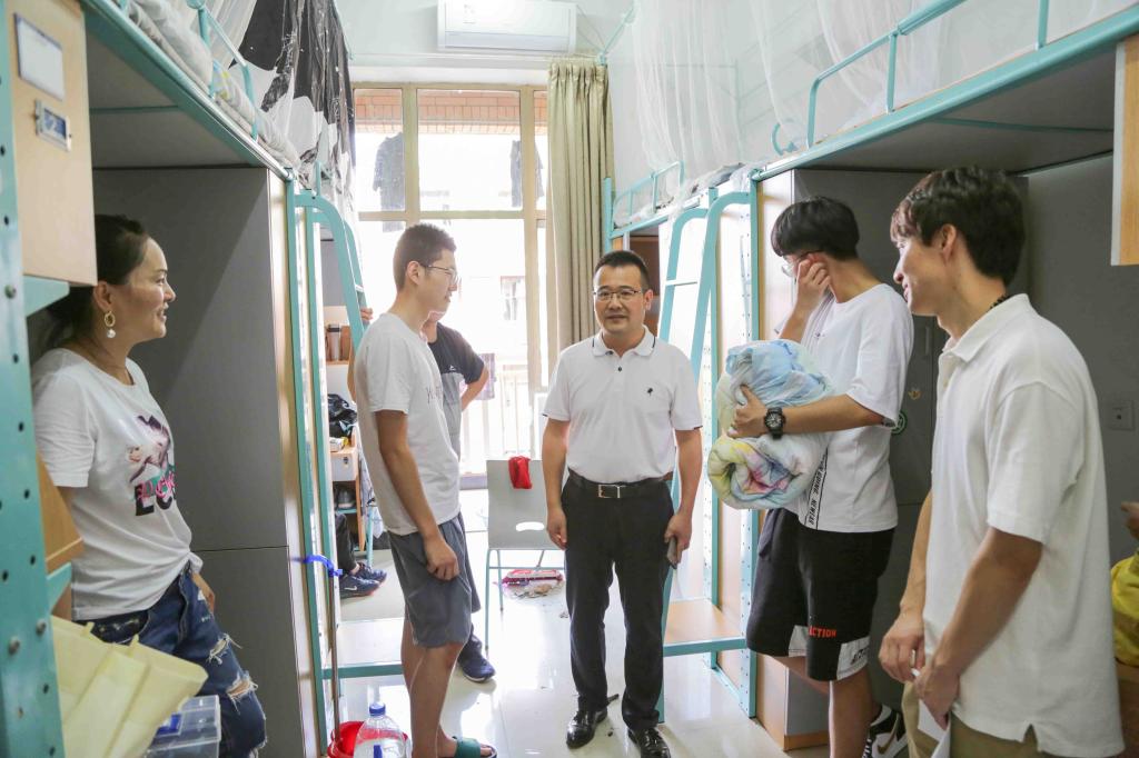 下午4时,学院党委书记潘国忠、党委副书记高国俊、党总支书记宣王威携辅导员分批次来到了学生公寓2号楼和8号楼,这里是人文学院新生在大学将要度过四年的家。走访过程中,领导们亲切地问候了新生们:“寝室还住的习惯么?”、“一个人来报道的啊?”“太阳成集团tyc33455ccwww的篮球馆很不错”一句句贴心的问候,真正地将关怀送进了新生的生活中,心坎里。同时也带着学院对他们的希冀,鼓励他们在学习上要努力,在生活上要自立。