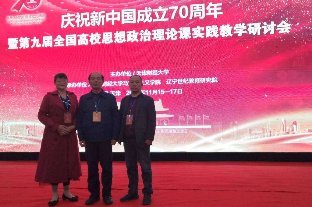 为深入贯彻习近平总书记在学校思想政治理论课教师座谈会上的重要讲话和党的十九届四中全会精神,落实中共中央办公厅国务院办公厅印发《关于深化新时代学校思想政治理论课改革创新的若干意见》和中共教育部党组关于印发《“新时代高校思想政治理论课创优行动”工作方案》通知精神,人文学院马克思主义教研部万泽民、彭金玉、王文圣三位教师于2019年11月15日至17日在天津市国家会展中心津园宾馆参加了第九届全国高校思想政治理论课实践教学研讨会。