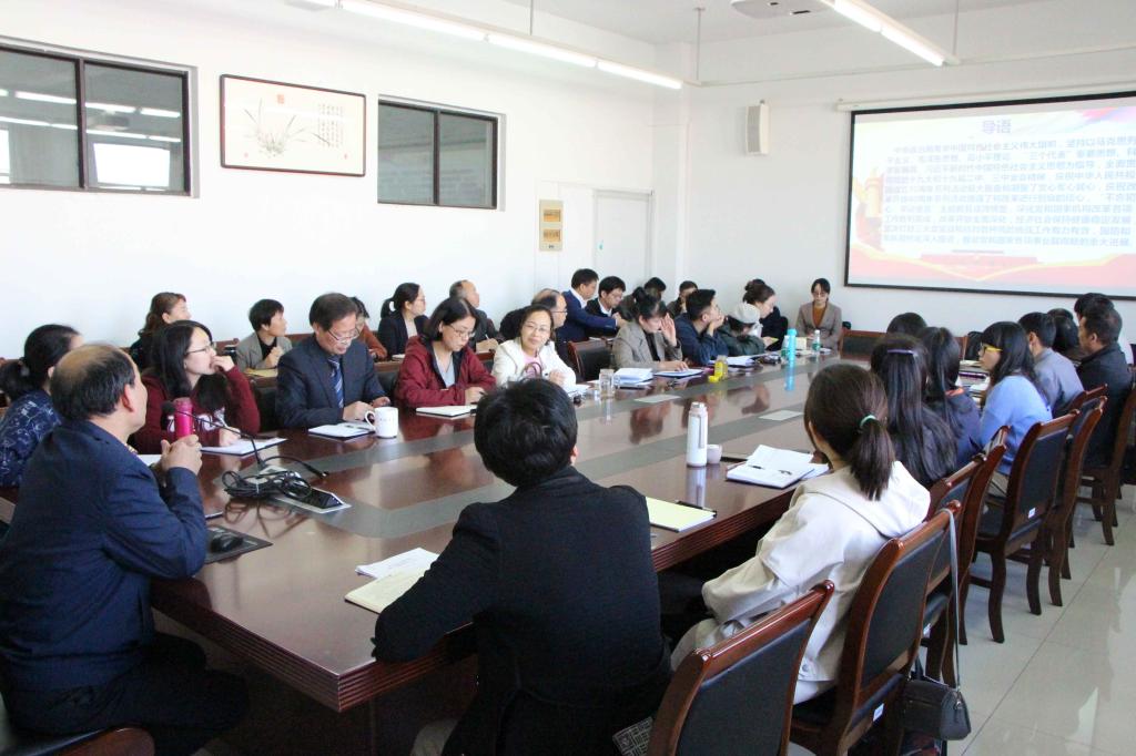 刘伯茹作总结发言,要求全体教职工认真学习十九届四中全会精神,强化责任担当,持续加强课堂教学管理,杜绝水课,打造金课,加强团队协作,进一步做好专业、课程建设,不断提升人才培养质量。