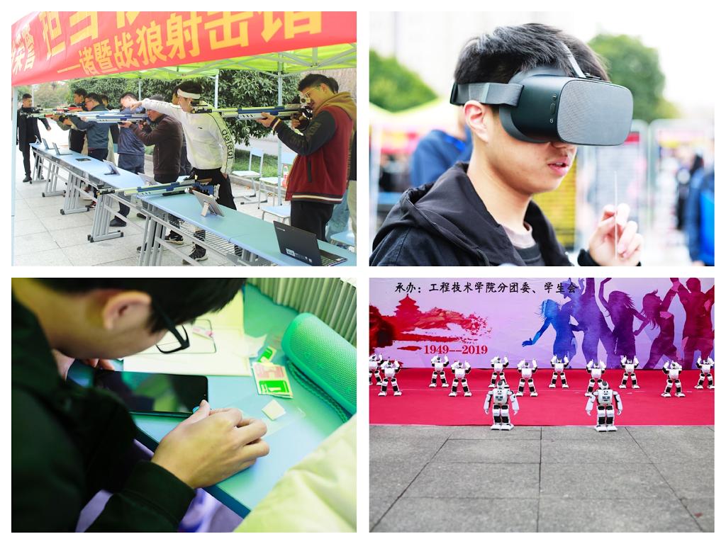 开幕式后,领导和嘉宾参观了学生科技成果和IT产品展。别开生面的机器人舞蹈秀激发学生对科学探索的热情;刺激的电子射击体验激发同学们爱党爱军、报效祖国的国防情怀;现场的5GVR体验活动,给人以身临其境的感觉,让广大师生感受到了科技的魅力。同时,开展了电脑义诊、3D打印展览、IT科技荣誉展、多媒体配音竞赛、抖音Vlog创意竞赛、手机换新衣等系列活动。