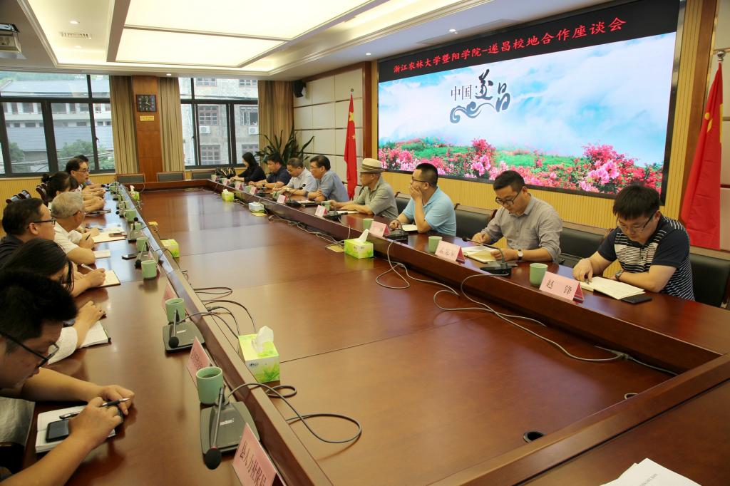 6月19日,副院长袁志刚带队赴遂昌考察交流,洽谈校地合作事宜。遂昌县副县长谭国庆、政协副主席林成高参加座谈会。