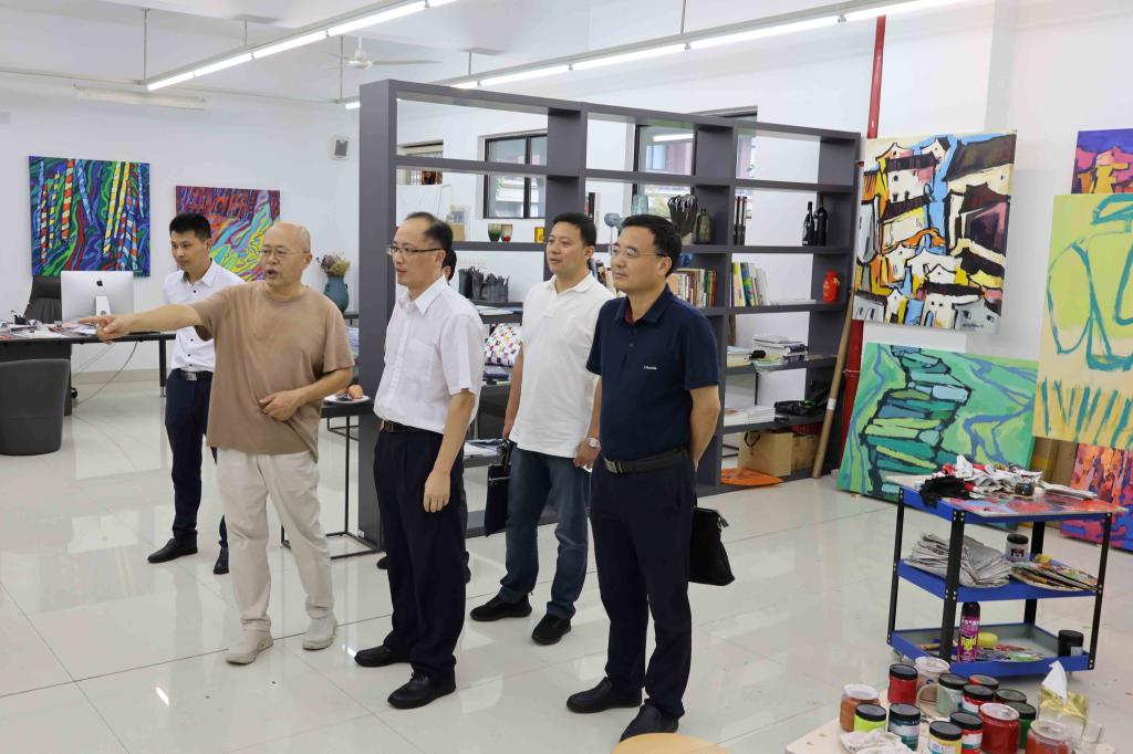 8月4日,浙江省委统战部副部长陈安率部机关涉侨处室主要负责人走访了晨晓艺术与设计学院,陈安副部长一行参观了晨晓工作室,并与学院领导及相关人员举行了座谈交流。太阳成集团tyc33455ccwww副院长袁志刚、办公室、晨晓艺术与设计学院相关负责人分别陪同参观和参加座谈会。