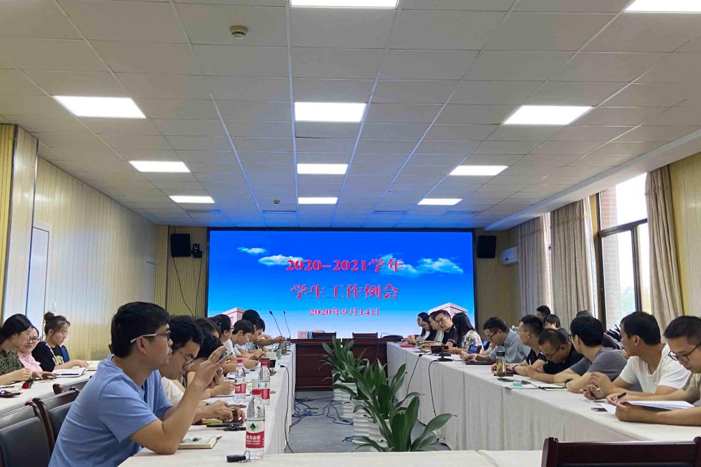 9月14日下午,学院召开了2020-2021学年第一次学生工作会议。院党委副书记高国俊出席。学院防控办、院办、组织人事部、教务部、计划财务部、学工部、团委、公共保障部相关负责人,各二级学院党总支副书记,学工部、团委全体成员,全体辅导员、学生社区相关人员参加会议。