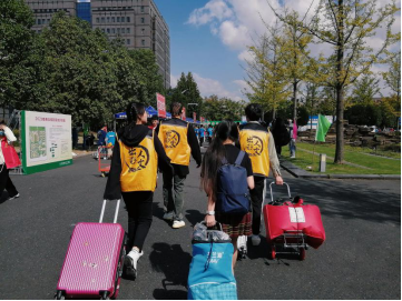迎新现场,新生们从父母手中接过的一袋袋一箱箱行李,拥抱后仍未消散的余温,走走停停回望的不舍,从空荡荡到四人齐聚、欢声笑语的寝室,都将见证着他们的成长和蜕变。人文学院百余号师生组成志愿服务队伍,穿着橘色小马甲,满面笑容、满怀欢心,热情接待和服务新生同学们。引导和帮助新生办理报到注册、领取校园卡、搬运行李、宿舍入住,以及车站接送、医疗救护服务等,橘色小马甲的身影在人群中来来往往、奔波忙碌。迎新现场还设立了现场咨询点、综合事务点、医疗服务点等,为新生和家长提供全方位的服务。
