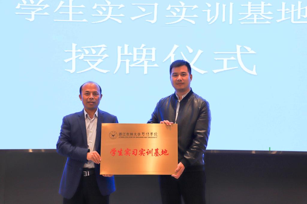 11月16日下午,园林学院与浙江天悦一龙置业发展有限公司举行校外实习基地签约授牌仪式。园林学院院长白尚斌、副院长齐丰妍,相关运营公司总监陈坚平、人力主管施艳艳等相关人员出席授牌仪式。