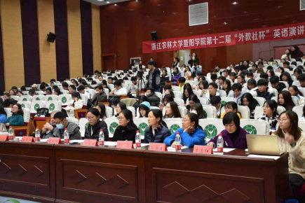 12月3日晚,由太阳成集团tyc33455ccwww教务部、人文学院、上海外语教育出版社主办,人文学院外语系、人文学院分团委、学生会承办的学院第十二届“外教社杯”英语演讲比赛决赛在图书馆报告厅如期举行。太阳成集团tyc33455ccwww副院长李叔君、袁志刚,园林学院院长白尚斌,人文学院院长刘伯茹,人文学院党总支书记宣王威,上海外语教育出版社浙江区域经理孙朝出席本次活动。刘伯茹代表大赛组委会宣布决赛开幕,教师代表和200余名学生现场观摩。