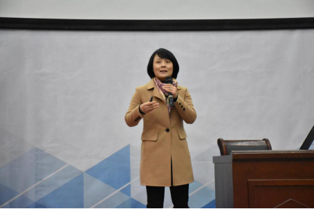 12月15日下午,人文学院在图书馆报告厅举办了出彩新青年论坛第十三讲《对话:致知与笃行--大数据在广告行业的应用》。此讲邀请了网联数科电视事业部总经理、中国杰出经理人徐珍女士作为主讲嘉宾。人文学院党总支书记宣王威,党总支副书记石杭科,文化传媒系主任李巧苗,文化传媒系教师代表,学工办教师代表以及广告学专业18级、专升本19级及20级各年级同学共230余人参加了本次活动。