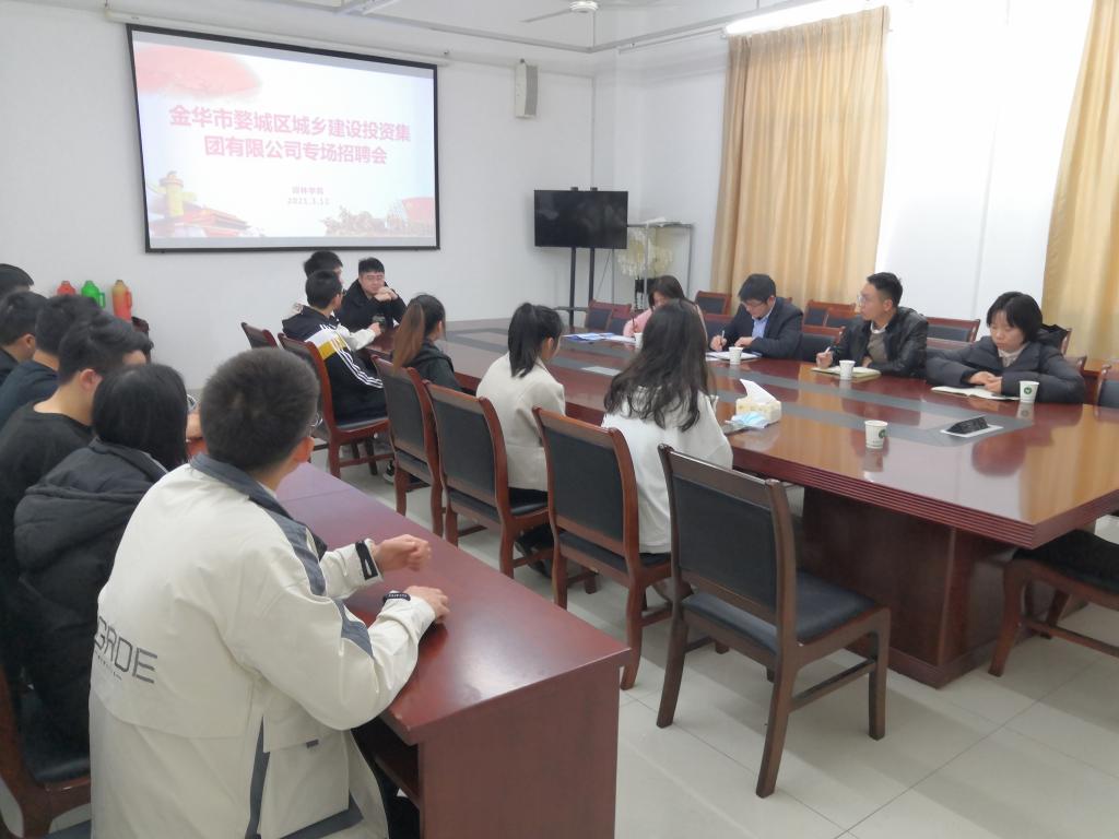 为进一步拓宽太阳官网毕业生就业渠道,3月12日,园林学院在理工三号楼学院会议室举办面向毕业生的双向选择招聘会。招聘会由园林学院党总支书记张佩成主持。金华市婺城区城乡建设投资集团有限公司及其下属企业参与本次招聘。