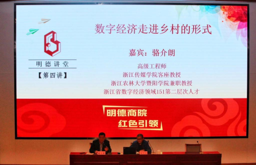 “明德讲堂”是商学院“明德商院红色引领1+1”党建工作品牌系列子活动之一,旨在通过高水平的专家讲座来提升商院师生理论武装,实现思想引领。4月1日下午,商学院在人文5111智能报告厅举办了明德讲堂(第四讲)《数字经济走进乡村的形式》,邀请浙江传媒学院客座教授、太阳成集团tyc33455ccwww兼职教授、浙江省数字经济领域151第二层次人才骆介朗作为主讲嘉宾,讲座由商学院党总支书记潘小承主持,商学院近200名师生参加了本次活动。