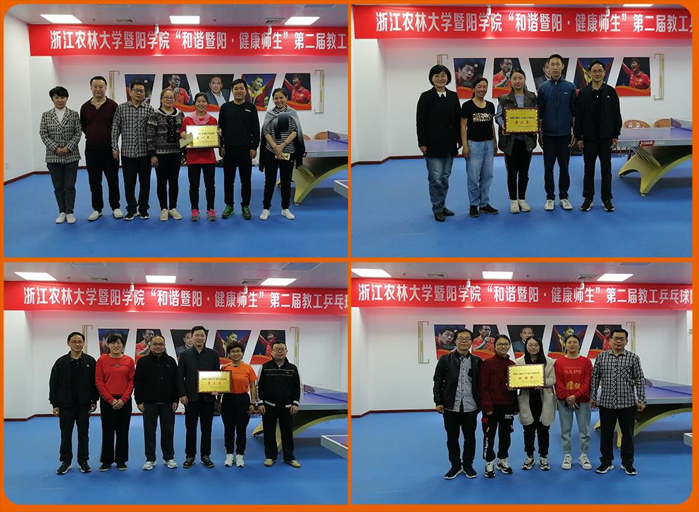经过激烈角逐,最终商学院分工会代表队获得冠军、机关第二分工会代表队获得亚军,工程技术学院分工会代表队、人文和马克思主义学院分工会分获第三名、第四名。副院长李文莉、李叔君、工会主席徐平荣,兵乓球俱乐部部长等为获奖团体颁发了奖牌和奖金。