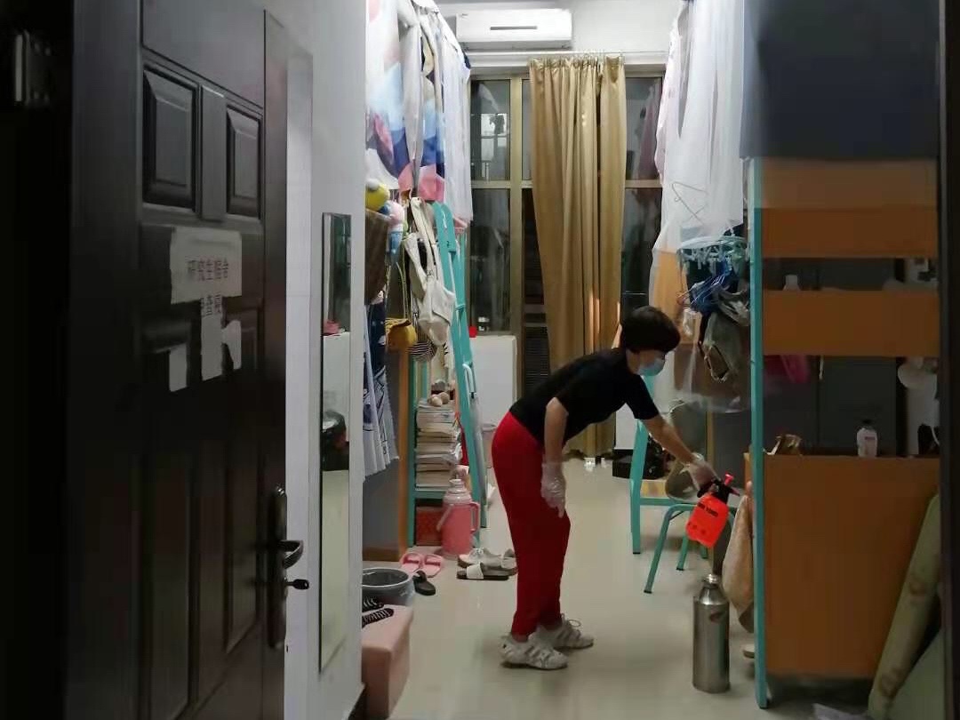疫情防控以来,尤其目前为春夏季传染病高发期,学生社区工作人员一直在对学生公寓楼各宿舍及公共区域逐一进行消毒工作,为防止发生卫生疾病进入宿舍做好预防工作。