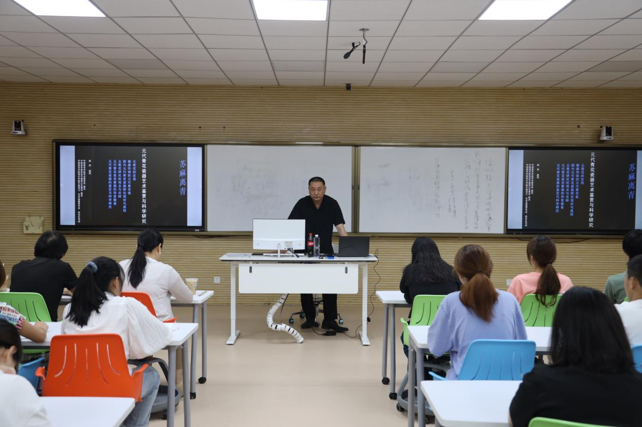 5月26日下午,中国珍珠学院在理工1502智慧教室成功举办了“珠玑讲堂”(第三讲)《苏麻离青——元代青花瓷艺术鉴赏与科学研究》,邀请中国美术学院设计学院平面设计、艺术品鉴赏专业研究生导师——赵燕教授作为主讲嘉宾,中国珍珠学院全体师生参与此次活动。