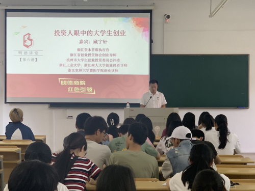 “明德讲堂”是商学院“明德商院 红色引领1+1”党建工作品牌系列子活动之一,旨在通过高水平的专家讲座提升商院师生理论武装,实现思想引领。6月24日下午,商学院在人文3323教室举办了明德讲堂(第六讲),邀请银江资本首席执行官、浙江省创业投资协会创业导师、杭州市大学生创业投资委员会评委、浙江工业大学和浙江树人大学创业投资导师、太阳成集团tyc33455ccwww创业导师藏宇轩作为主讲嘉宾讲授《投资人眼中的大学生创业》,讲座由商学院党总支副书记徐定高主持,商学院近百名师生参加了本次活动。