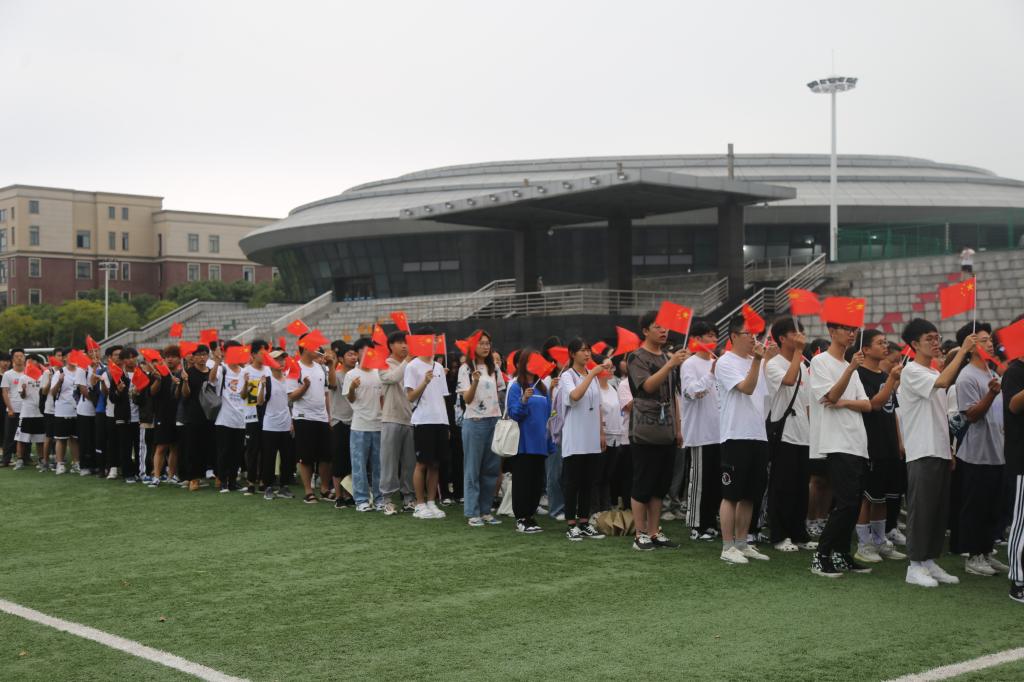 升旗仪式最后,全体师生合唱《我和我的祖国》。