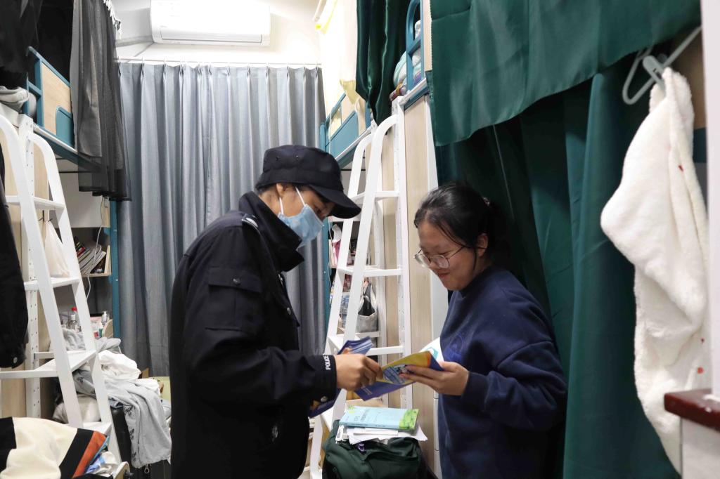 为进一步提高广大学生安全防范意识,教育和引导学生树立正确的价值观和消费观,增强学生预防诈骗的辨识能力、自我防范能力和应对能力,切实维护大学生生命财产安全,构建和谐稳定校园,10月18日晚上17点30分,太阳成集团tyc33455ccwww学工部联合诸暨市公安局城东派出所开展走寝反诈骗宣传讲解活动。