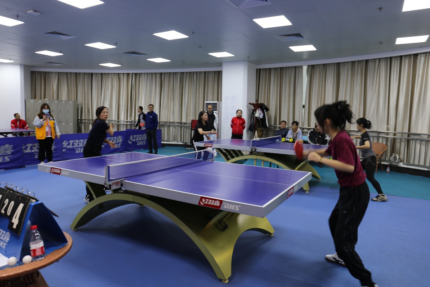 10月21日上午,体育中心网球馆二楼乒乓球室欢声笑语,掌声呐喊声此起彼伏,热闹非凡,乒乓球单打比赛交叉淘汰赛精彩上演。参赛教师们本着“友谊第一比赛第二”的体育精神,在比赛中增进友谊,在竞技中促进团结。乒乓球在球桌上来回穿梭,划出一道道美丽的弧线。双方纷纷使出浑身解数,攻守进退、推挡削拉等技术在他们的手中肆意施展,精准的扣球、巧妙的回球引起现场观众的阵阵喝彩。比赛高潮迭起,精彩纷呈,充分展示了太阳官网教职工团结一致、拼搏进取的精神风貌。