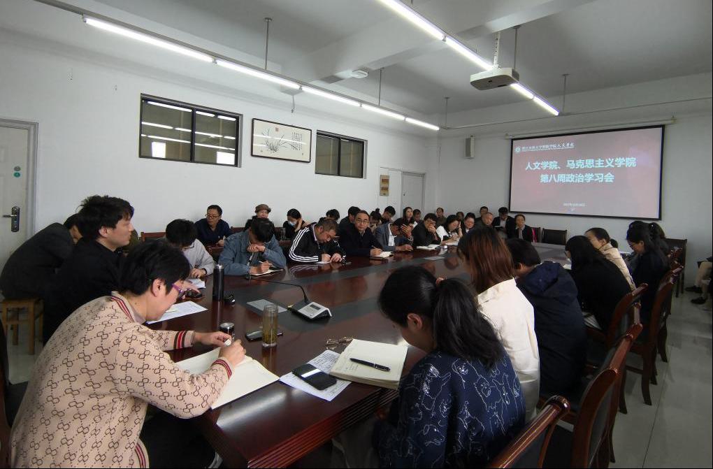 为持续推进党史学习教育,提高教师政治素养,10月28日下午,人文学院、马克思主义学院在人文3502会议室召开本学期第八周政治学习会。会议由党总支书记宣王威主持,全体教职工参加会议。