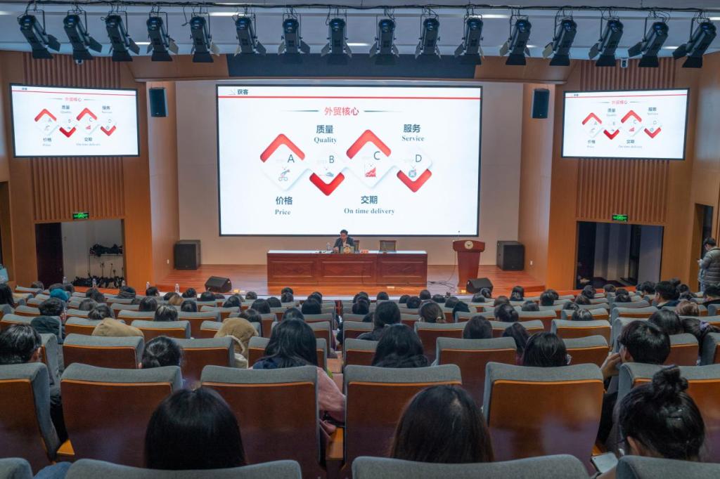 11月17日晚,中国大唐袜艺学院在人文5111智能报告厅举行“袜艺论坛”第五讲,邀请嘉宾做客论坛,分享交流,授课解惑。中国大唐袜艺学院以及商学院国贸专业学生等200余人参加活动。
