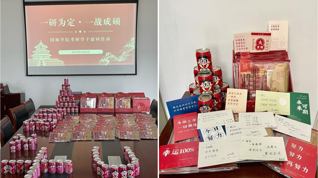 为鼓舞考研学生信心,舒缓他们的心理压力,12月2日,园林学院在理工3-302会议室举办了2022届毕业生考研慰问活动。