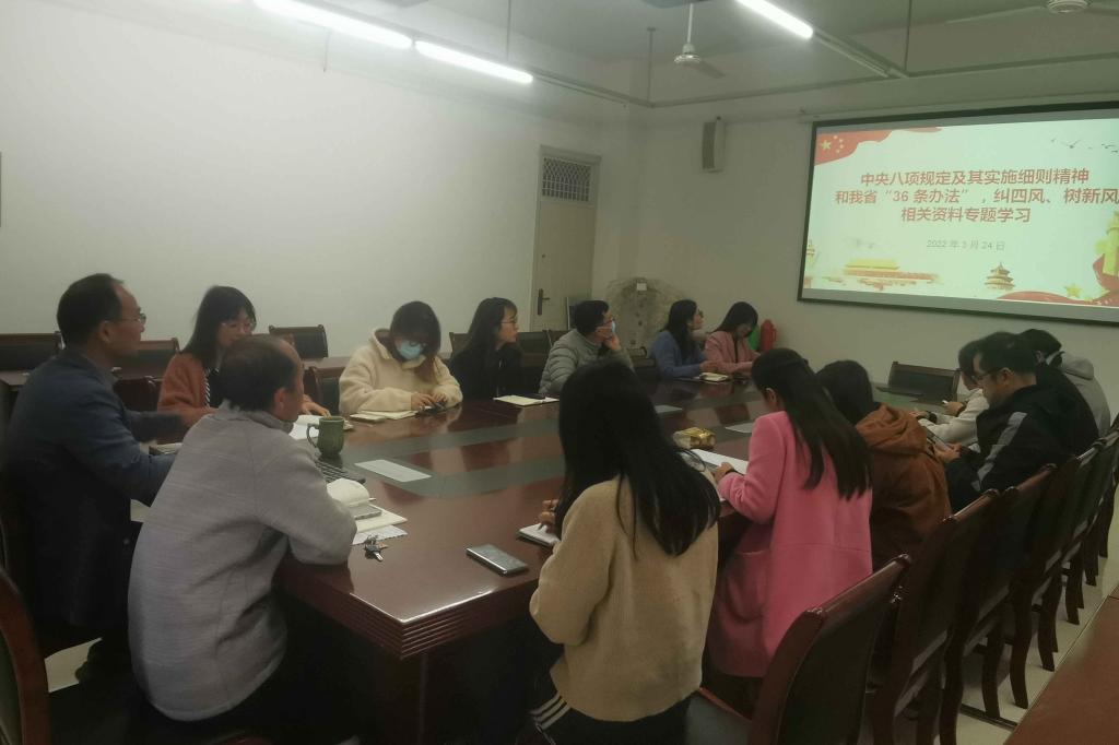 3月24日下午,园林学院召开本学期第四次全体教职工会议,专题学习中央八项规定及其实施细则精神和我省“36 条办法”,纠四风、树新风系列文件和全国两会精神,同时就近期的教育教学、科学研究、社会合作、学生管理与服务、安全稳定及疫情防控各项工作进行布置