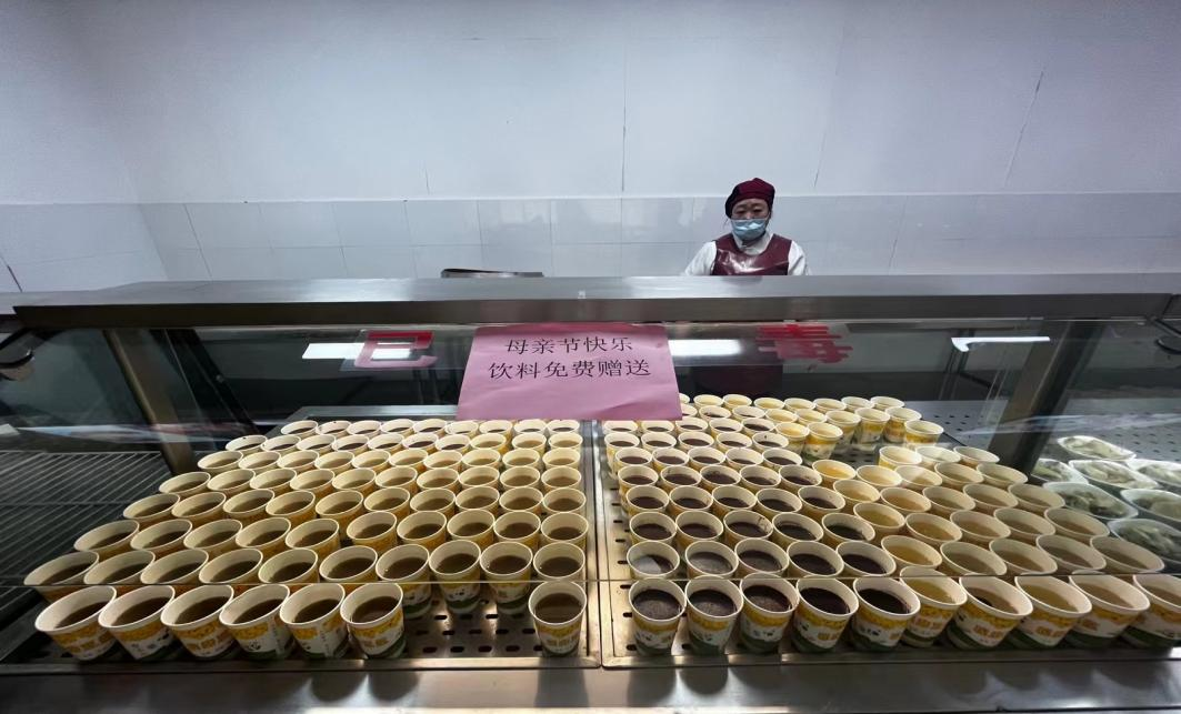 在母亲节来临之际,为弘扬中华民族传统美德,食堂精心开展“以感恩之心,致母亲节”为主题的感恩活动。5月7日中午,教工餐厅为用餐的教职工准备了免费的绿豆汤、银耳羹和黑米汁,提前送上母亲节祝福,致敬母亲、祝福母亲。