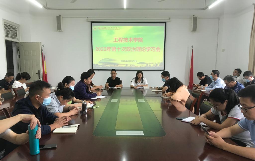 9月29日下午,工程技术学院在理工3402会议室召开了2022年第十次政治理论学习会,会议由工程技术学院院长彭樟林主持,工程技术学院党总支书记周聪、工程技术学院副院长胡建华出席会议,全体教职工参加会议。