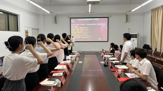 随后,在人文学院副院长汪永奇的带领下,全体新教师们进行了庄严的宣誓。铿锵的声音代表教师们心中燃烧的执着与坚守。