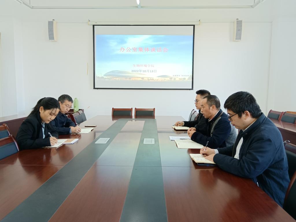 10月13日下午,生物环境学院在理工3502会议室召开办公室集体谈话会。生物环境学院党政领导班子和办公室全体人员参会。