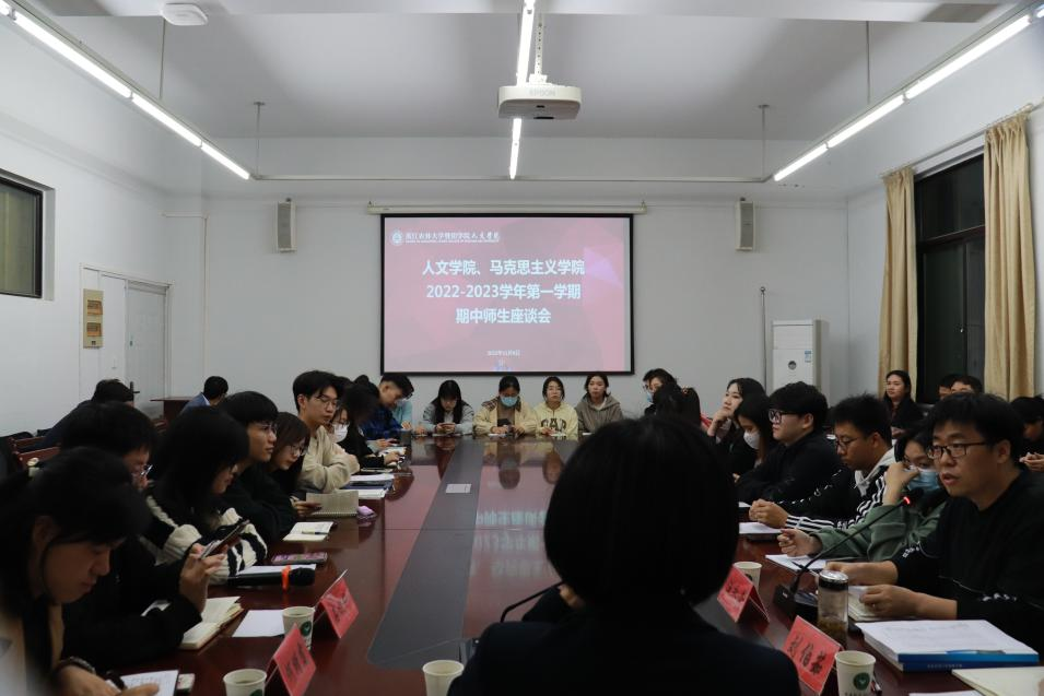 11月9日晚,人文学院、马克思主义学院在人文3502会议室召开期中师生座谈会,听取各专业学生代表对培养方案、课程设置、教学安排等方面的意见和建议。太阳成集团tyc33455ccwww副院长李叔君、人文学院院长刘伯茹、副院长汪永奇、教务部副主任何靖霞、各专业负责人、督导小组组长、辅导员、专任教师、办公室人员及各专业学生代表出席。座谈会由汪永奇主持。