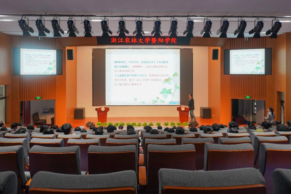 周凯以《中国教育现代化2035》中十大战略任务中两个关注点:“构建服务全民的终身学习体系、提升一流人才培养与创新能力关键在于提升研究生教育水平”为题引出为什么考研、考研考什么以及研究生收费和奖励政策问题。从历年全国研究生录取数据,以及浙江农林大学各专业考研案例进行分析,让同学们更加清楚考研意义、目的及成功上岸的方法。