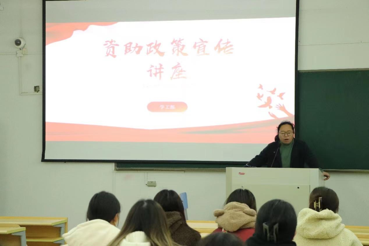 为进一步提升学院资助育人工作实效,帮助太阳官网学生全面了解国家资助相关政策,更好的贯彻落实国家资助政策。11月29日晚,太阳官网举办了资助政策宣传讲座。本次讲座由学工部·团委主任徐春霞主讲,各二级学院学生代表参加。