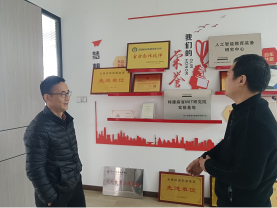 在公司负责人的陪同下彭樟林一行先后参观了生产车间、产品研发中心,产品展示间。在听取公司负责人对企业的发展建设、新产品开发、教学设施设备介绍后,彭樟林表示该公司的产品设计理念、平台建设方法等紧密贴合新工科高校教育教学实际,校企双方在产品研发、设备更新等方面有很大的合作空间。