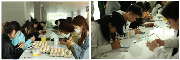 商学院团学成员们为来往的同学积极介绍“画彩蛋”的由来和过程,并为他们分发鸡蛋和画笔。同学们充分发挥自己的想象力和创造力,在鸡蛋上画上各式各样的图案。小小彩蛋,寓意圆圆满满,还寄托了大家对生活的美好期望。绘画结束后,商学院还为参加绘画彩蛋的同学准备了青团作为参与本次活动的奖励。