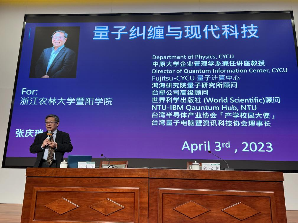 4月3日下午,台湾中原大学讲座教授,前台湾大学代理校长张庆瑞受邀来学院做了题为“量子纠缠与现代科技”的专题学术讲座,讲座由学院副院长金松恒主持,相关专业领域教师和学生参加讲座。
