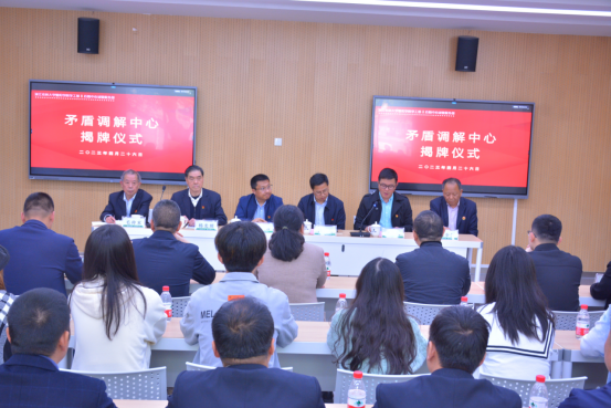 为创建平安和谐校园,提高发现、化解和处置校园内师生矛盾纠纷的能力,4月26日,学工部与诸暨服务部在诸暨市枫桥镇社会治理中心举行共建校园矛盾调解中心揭牌仪式。学院党委副书记高国俊,后勤服务中心党委副书记、纪委书记钱潮,枫桥镇调解志愿者联合会会长毛仲木出席仪式,仪式由吴越公司副总经理夏泉主持。会议邀请了枫桥镇调解志愿者联合会副会长杨光照作调解中心创建经验分享。