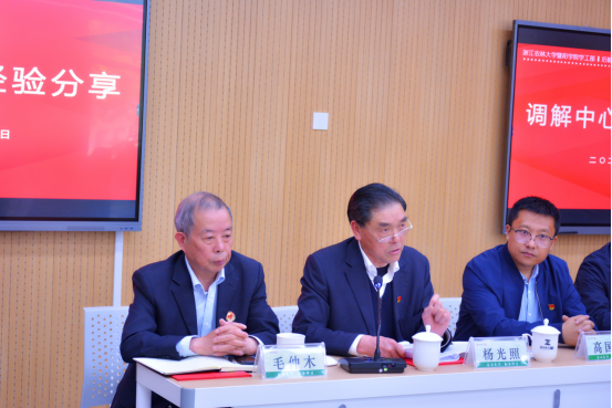 杨光照从组织建设、制度建设、业务建设、场所与经费保障、调解员的“四心”素质与“四千”精神等方面分享了调解中心的创建经验。
