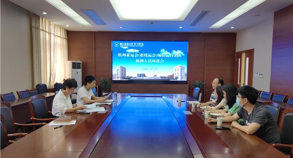 6月5日,学院召开杭州亚运会(亚残运会)场馆运行团队抽调人员座谈会,学院党委副书记李文莉出席会议。
