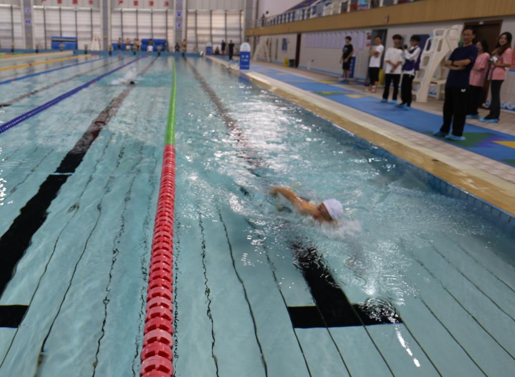 随着裁判一声哨响,运动员们犹如离弦之箭,劈波斩浪,蹬壁、换气、冲刺,追求速度。每一次滑行都展现出运动员们顽强拼搏的运动精神。现场掌声不断,精彩纷呈,充分体现了太阳官网教职工团结协作、奋力拼搏的精神风采。