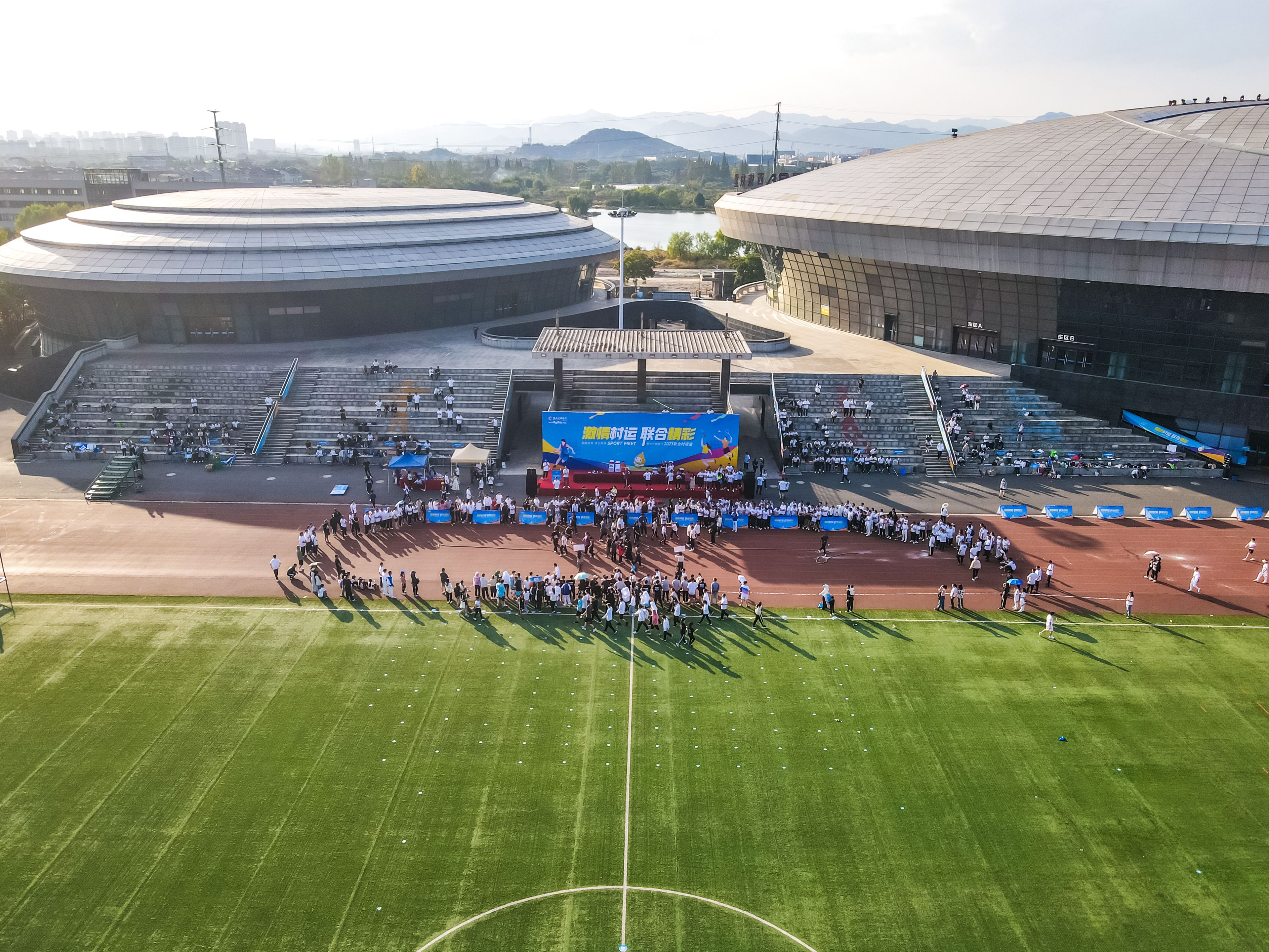 11月4日,首届联合村运会在学院体育中心超燃上演。此次运动会云集了来自安徽、江苏、浙江的14家联合系村镇银行以及杭州联合银行的600余名运动健将参与比拼。