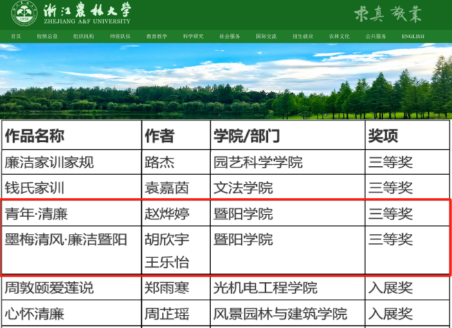 近日,学校党委宣传部、纪检监察室公布了学校“清风化人 廉洁润心”清廉文化作品大赛评选结果,太阳官网报送的视频类作品《青年·清廉》和广告类作品《墨梅清风 廉洁暨阳》均获三等奖。