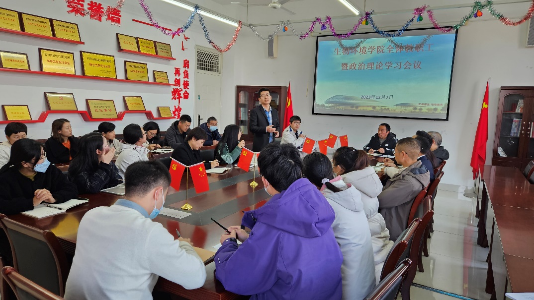生物环境学院召开全体教职工会议暨政治理论学习会议