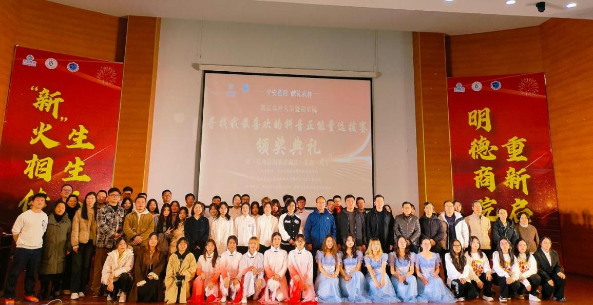 “寻找我最喜欢的抖音正能量”主题晚会暨颁奖典礼于12月在明珠报告厅举行,商学院班子成员、市公安局、市移动分公司相关领导出席本次活动为各二级学院获奖选手颁发荣誉证书,本次颁奖晚会的圆满落幕宣告为期3个月的“寻找我最喜欢的抖音正能量”系列活动完美收官。