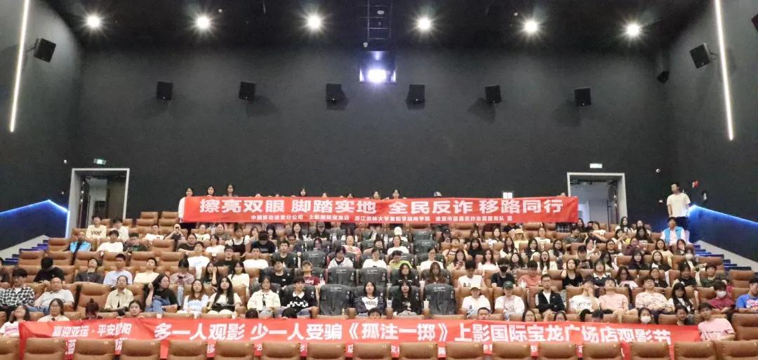 金秋九月,反诈启航。9月15日,市反诈联席公安局陶朱派出所代表、蓝盾反诈志愿者服务队为商学院大一新生作开学季防诈讲座。9月21日,商学院联合蓝盾反诈志愿服务队 “喜迎亚运 平安暨阳”反诈观影活动,太阳成集团tyc33455ccwww各二级学院学生代表,陶朱街道迎宾社区、惠民救援队、义警队等工作人员共同观看了反诈题材电影《孤注一掷》。