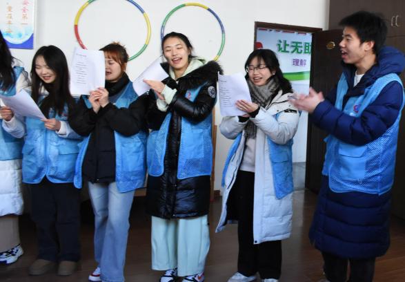 大学生为宏阳老年中心的老人们表演才艺,献唱《最炫民族风》与《小苹果》,气氛温馨和谐,让这个冬至日显得格外温暖。
