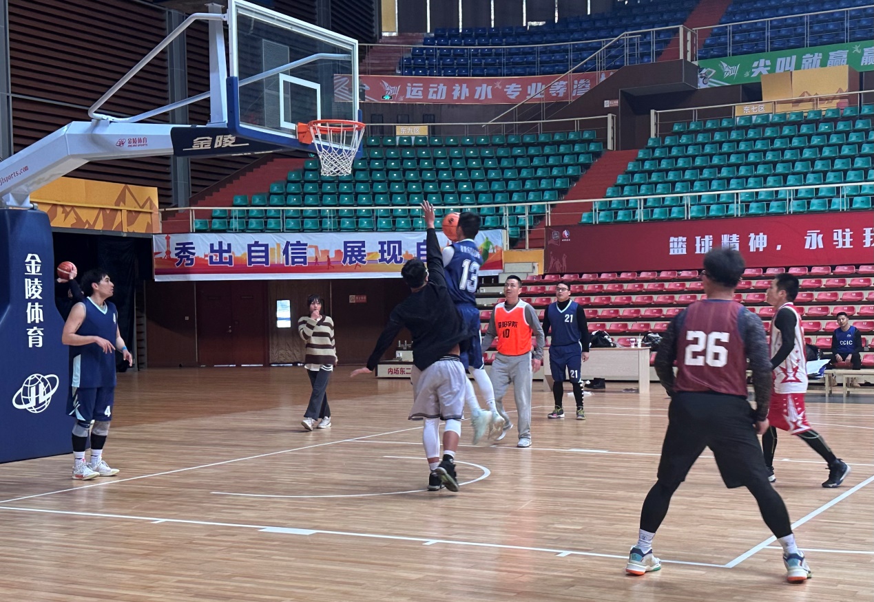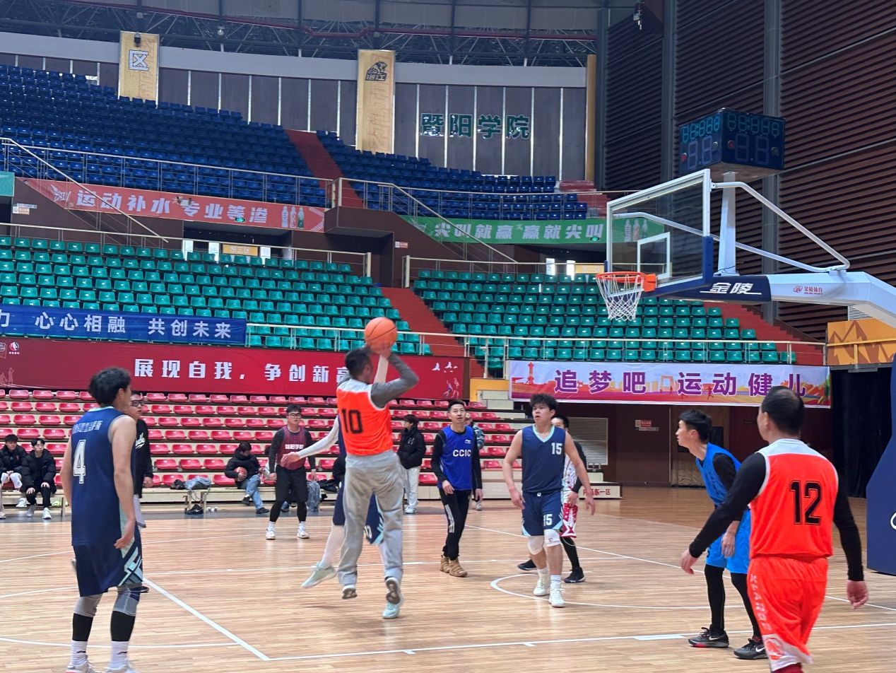 12月21日,商学院教职工篮球队与中国银行诸暨支行篮球队在学院篮球馆主馆开展了篮球交流友谊赛。