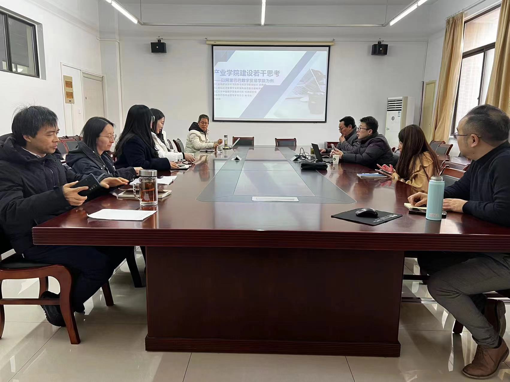 12月23日下午,阿里巴巴数字贸易学院发展论坛在人文3302会议室顺利举办,本次论坛由浙江机电职业技术学院数字商贸学院副院长、副教授廖润东主讲,商学院院长何红光主持,商学院教师代表参加了本次论坛。