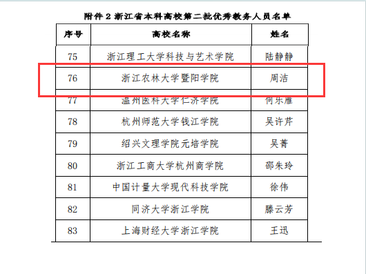 近日,浙江省高等教育学会发布了《关于公布浙江省本科院校第二批榜样教务处长及优秀教务员的通知 》(浙高教学会〔2024〕1号 ),学院教师周洁被评为第二批优秀教务人员。