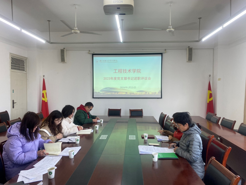 为深入学习贯彻习近平新时代中国特色社会主义思想,提高基层党组织工作质量,1月23日,工程技术学院召开2023年度党支部书记述职评议会。工程技术学院院长彭樟林、党总支书记周聪出席会议,工程技术学院党总支委员、全体党支部书记参加会议。会议由工程技术学院党总支副书记戚愉彩主持。