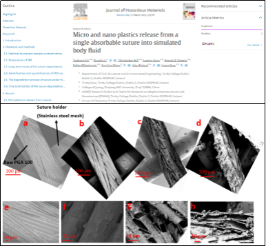 生物环境学院教师李敦柱作为通讯作者在国际权威学术期刊《Journal of Hazardous Materials》(中科院1区, IF = 13.6)发表了题为“Micro and nano plastics release from a single absorbable suture into simulated body fluid”的研究论文。《Journal of Hazardous Materials》是一个健康安全研究领域的国际权威期刊,旨在加强全世界对威胁公共健康和环境安全有害物质的理解与控制。该篇论文太阳成集团tyc33455ccwww为第一通讯单位,都柏林圣三一大学(Trinity College Dublin)为联合通讯单位。
