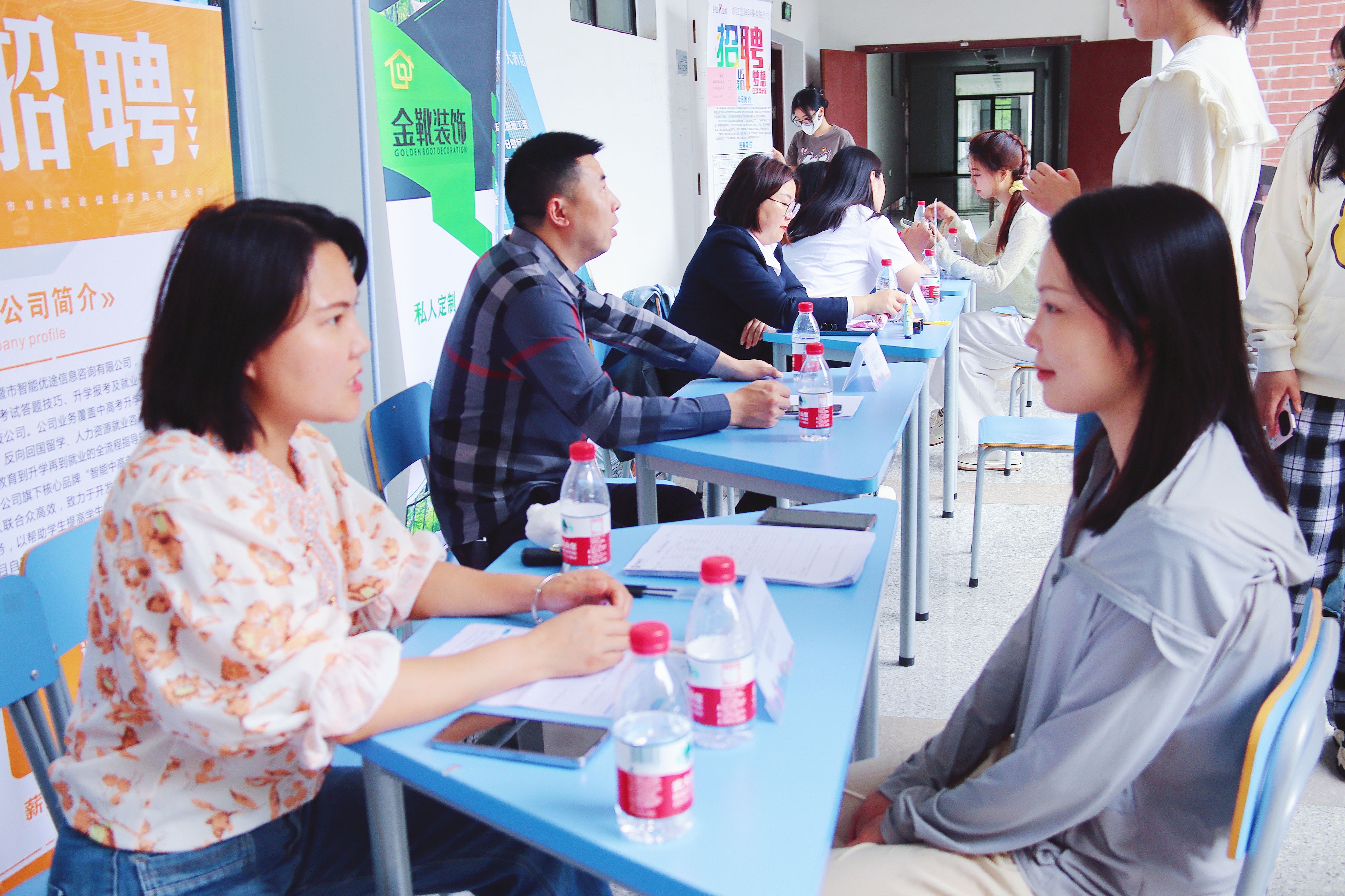 招聘会现场,各家企业热情地介绍企业优势、职业发展前景和诱人的薪资待遇;毕业生积极与心仪的用人单位互动交流、咨询岗位详情并投递简历。